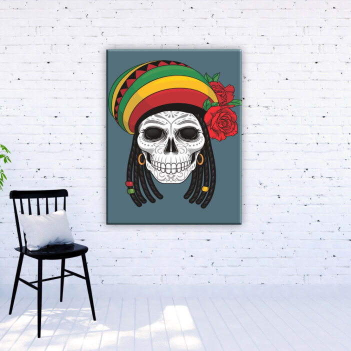 Tableau tête de mort rasta