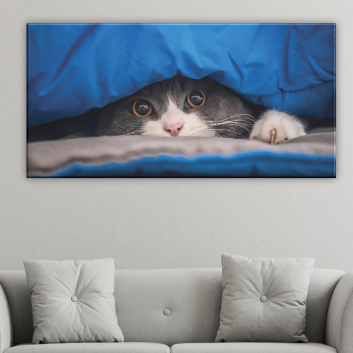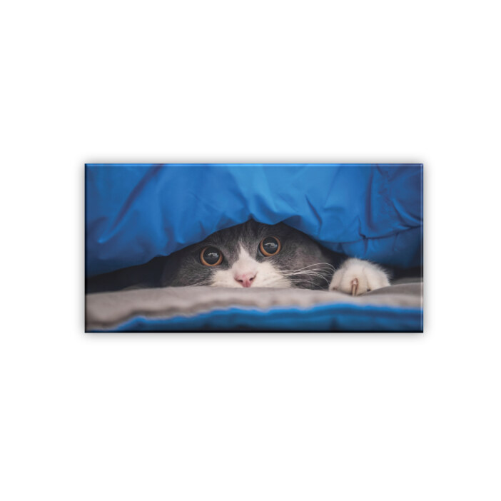 Le chat est reconnu pour être un animal à la personnalité forte mais si mignon. Très indépendant, il apprécie la routine qui le rassure et le repos lui est indispensable. Avec ce tableau chat se cachant vous avez votre ami toujours à votre cote.