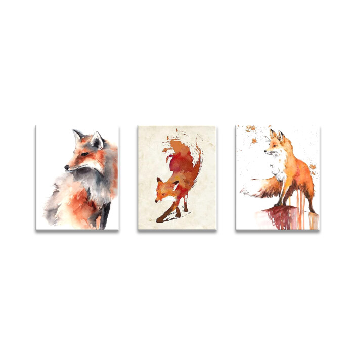 Le tableau peinture moderne de renards est une œuvre esthétique et touchante qui plaira à tous les fans de renards et de modernité. Il présente trois peintures différentes qui ont su capturer la beauté sauvage des renards. Chaque peinture est un renard unique, mais aucun d’eux n’est dénué de son élégance naturelle.