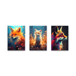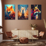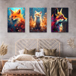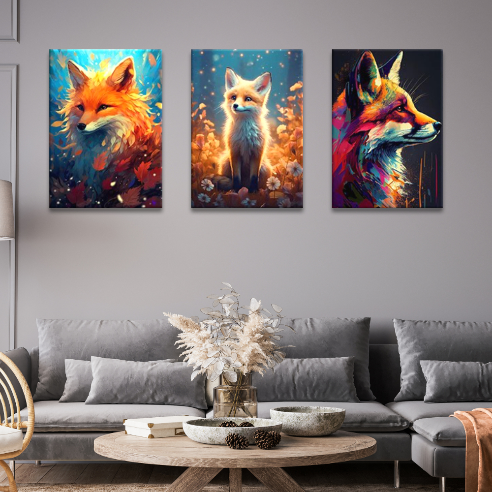 Ce tableau est une association de trois parties différentes. Chacune d’entre elles représente un renard tout à fait unique et le tout forme une scène esthétique qui transmet un message fort. L’ensemble sera parfait sur un pan de mur vide, dans une chambre ou un séjour par exemple, et occupera facilement l’espace grâce aux dimensions disponibles.