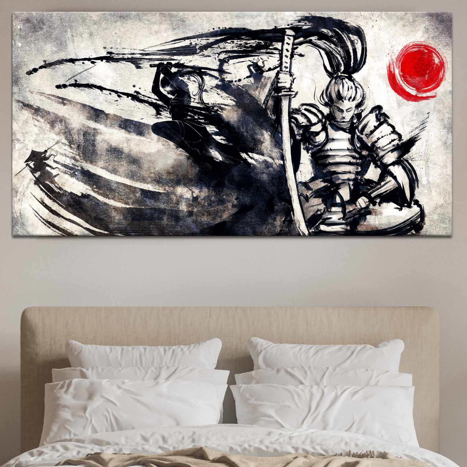 Cette œuvre d’art représente un Samouraï japonais en position de méditation portant une magnifique armure ainsi qu’une épée à sa main. Symbole de courage et de sagesse, ce tableau apportera calme et sérénité à votre intérieur.