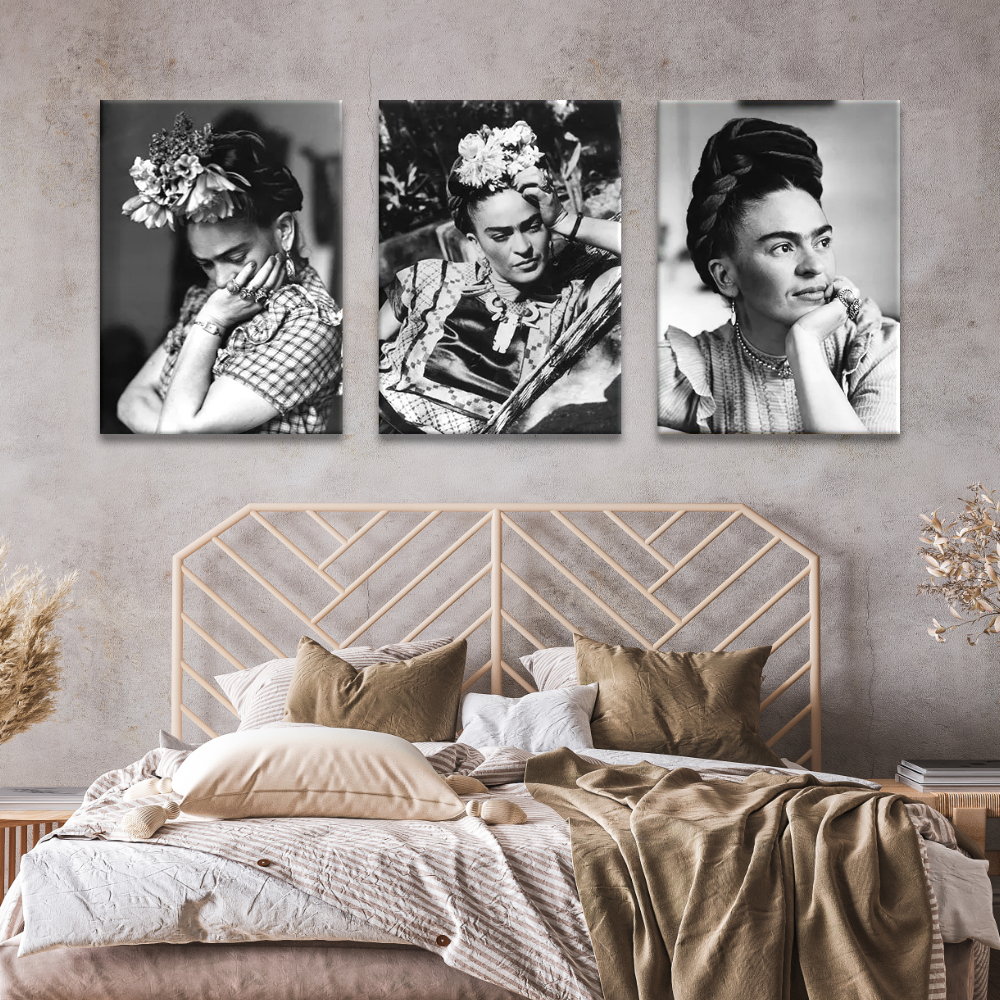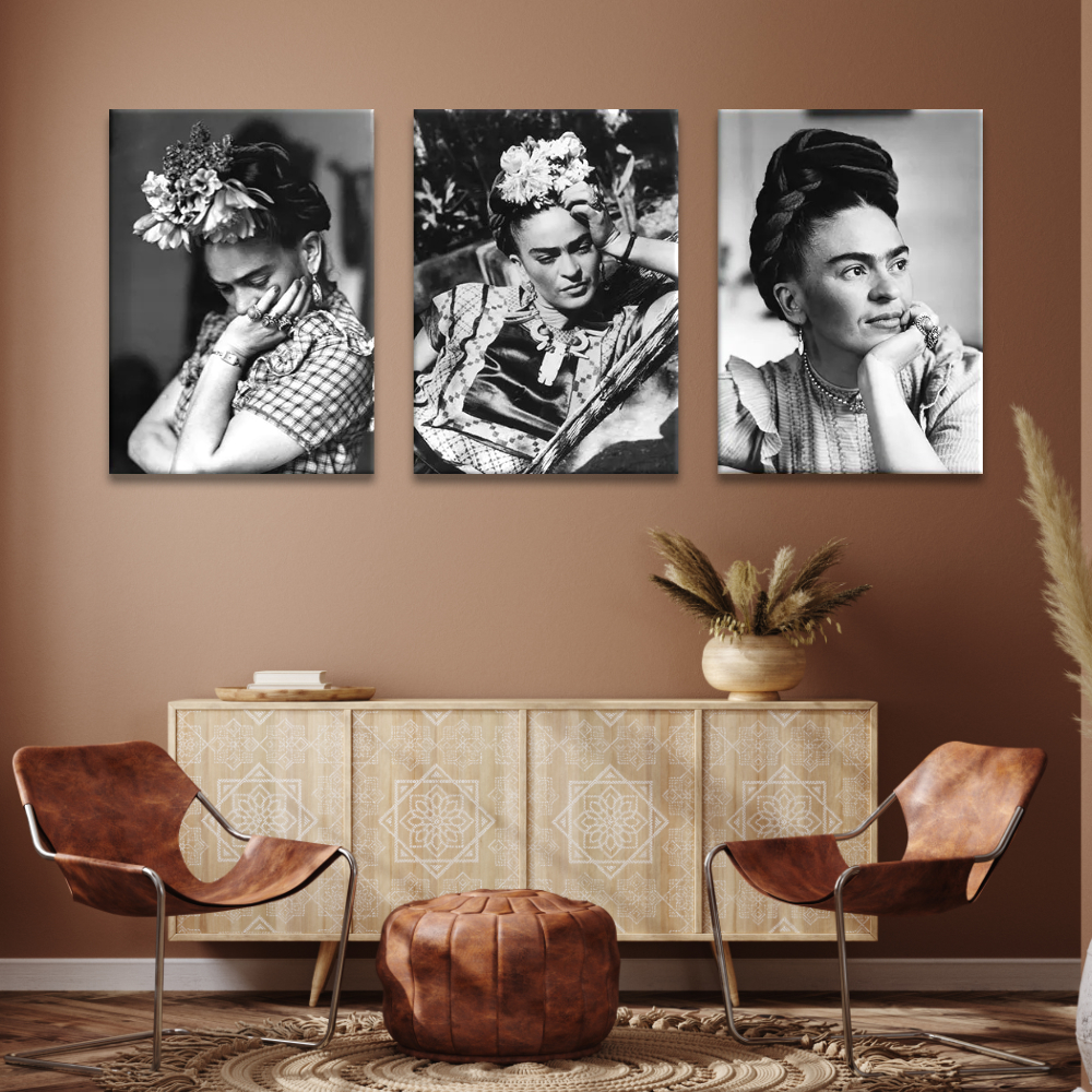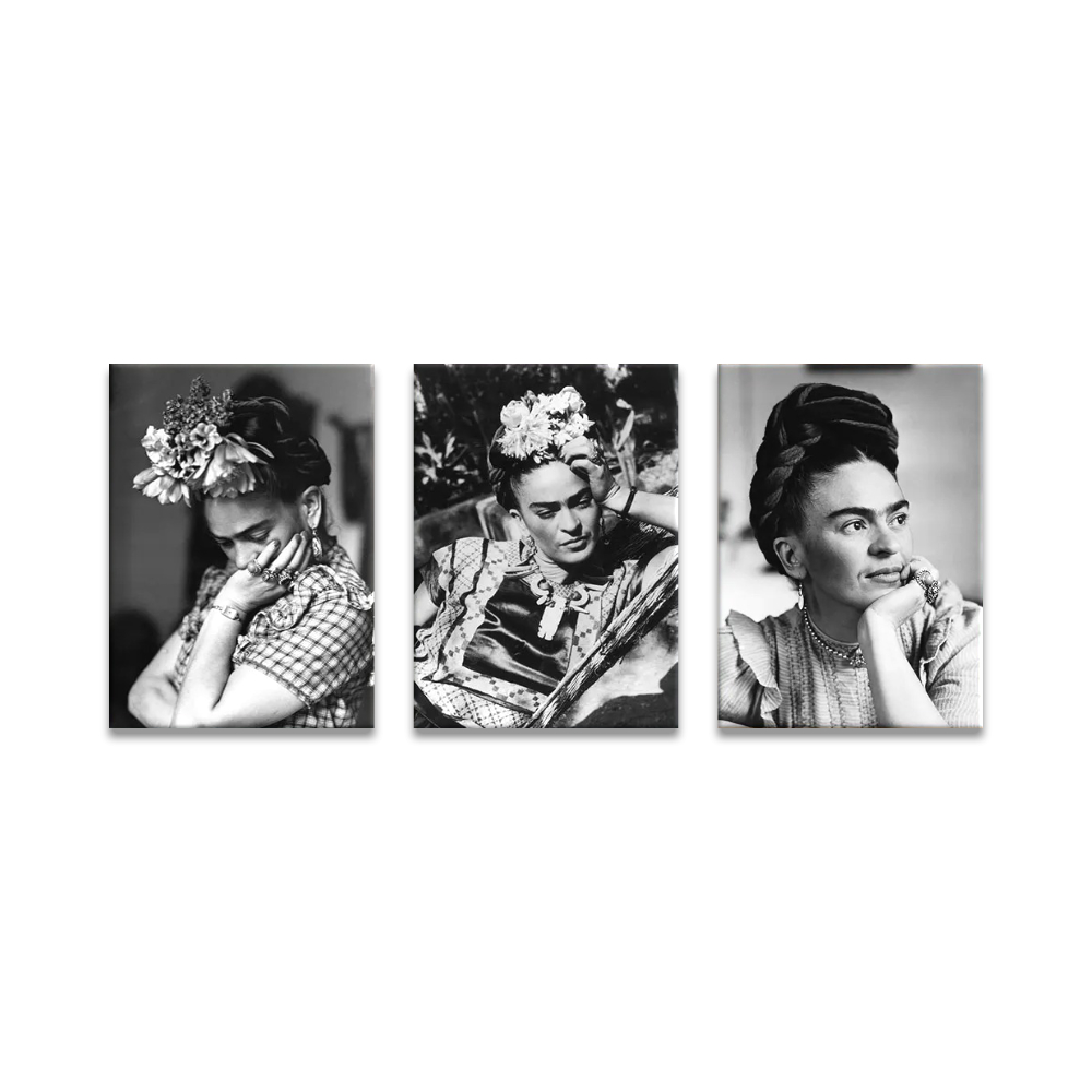 Ce tableau Mexique Frida Kahlo portraits en noir et blanc vous révèle la puissante sensibilité de l’icône mexicaine à travers ces trois portraits capturés au plus proche d’elle en noir et blanc. Ils laissent transparaître l’intensité de son regard, mais également les tourments de son âme d’artiste.