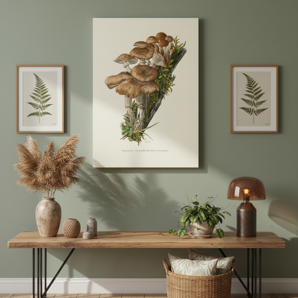 Accrocher cette toile, c’est transformer un espace ordinaire en lieu vibrant de convivialité. Les teintes douces et la précision botanique diffusent une chaleur visuelle qui s’accorde avec des intérieurs cosy.