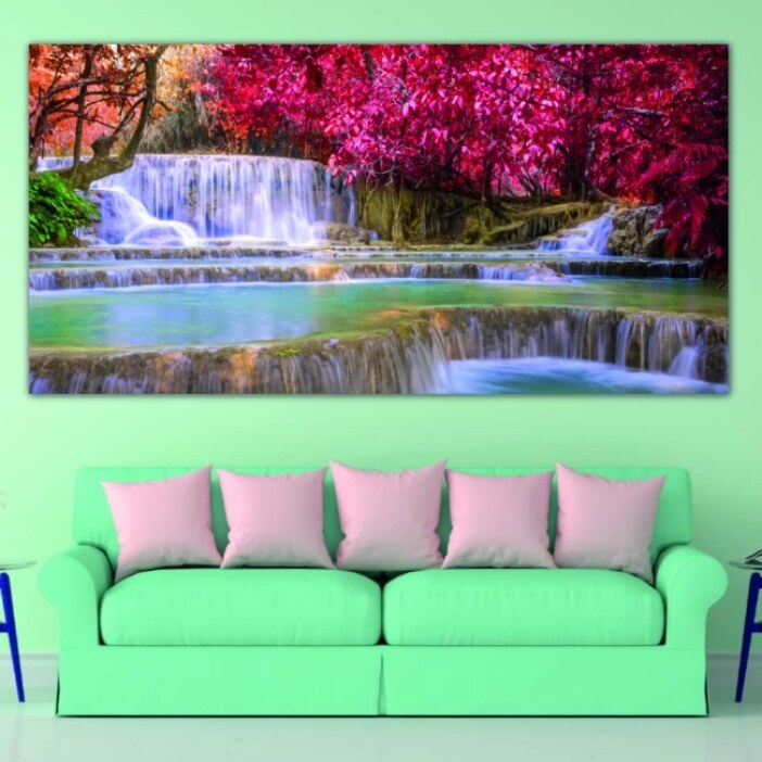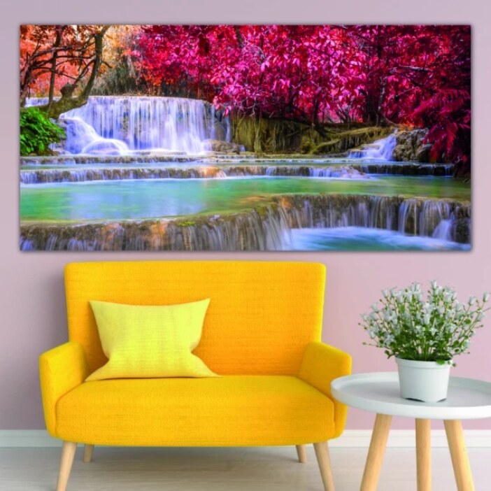 Cette toile représentant une large rivière tranquille et accueillante avec ses piscines naturelles d’eau turquoise vous permettra de vous ressourcer à chaque fois que vous la regarderez avec attention.