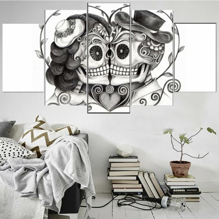Découvrez ce tableau tête de mort, l’œuvre d’art parfaite composé d’un mariage pour rendre votre maison élégante et avec une touche d’art sur vos murs.