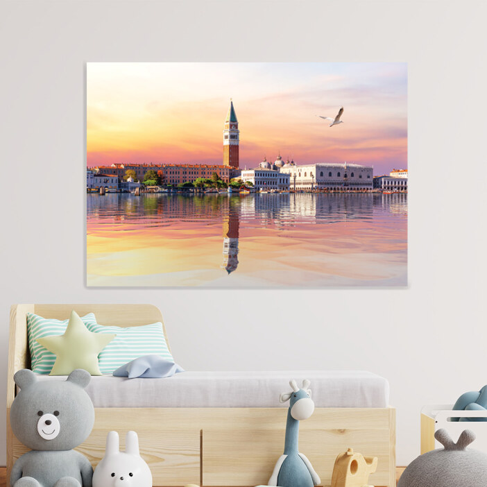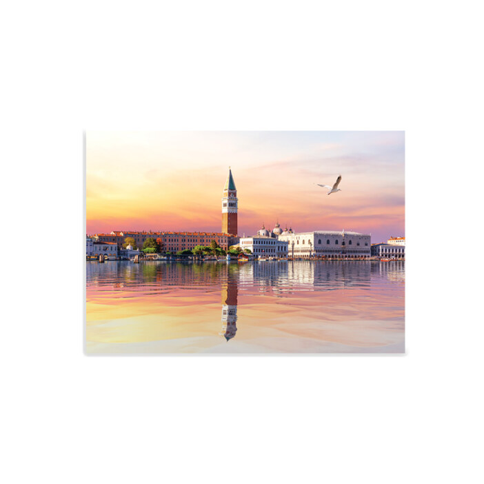 Ce tableau image le Campanile de Saint-Marc situé à Venise. Cette tour de presque 100m de haut est une tour campanaire qui se trouve au niveau de la place Saint-Marc et qui a été construite il y a plus d’un siècle.