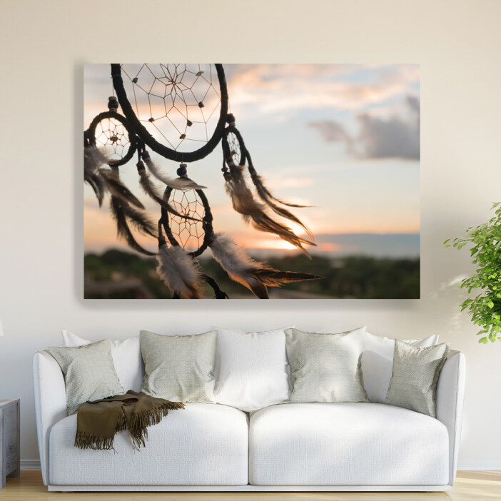 Ce tableau représentant un attrape-rêve au vent est l’élément paisible qui fera de votre pièce, un espace cocooning dans lequel vous vous sentirez bien, et où les petites bougies, ainsi que les plaids ne seront pas de refus.