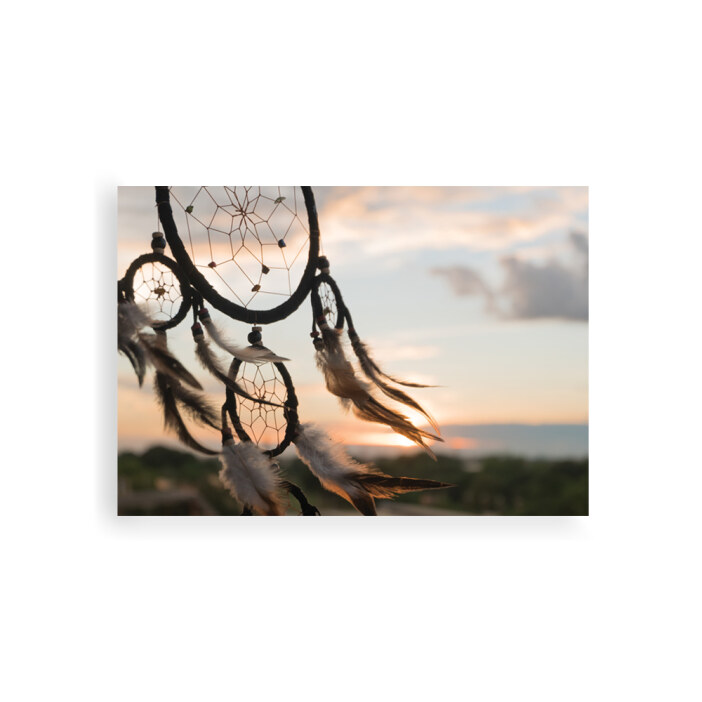 L’attrape rêve provient d’origine amérindienne. Se composant d’un cerceau, d’un filet et de plumes il à pour signification d’éloigner les mauvais rêves du dormeur en les capturant.