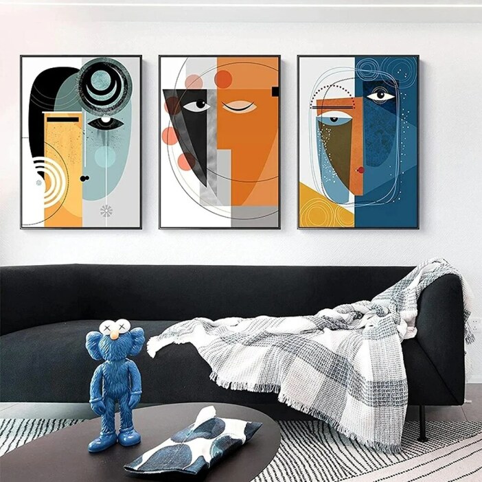 Ce tableau visage abstrait met à l’honneur, grâce à ses trois panneaux, trois visages interprétés artistiquement selon le style abstrait. Il vous permettra d’afficher un grand triptyque sur un grand mur vide ou de profiter de trois tableaux pour décorer un ensemble de murs de façon harmonieuse.
