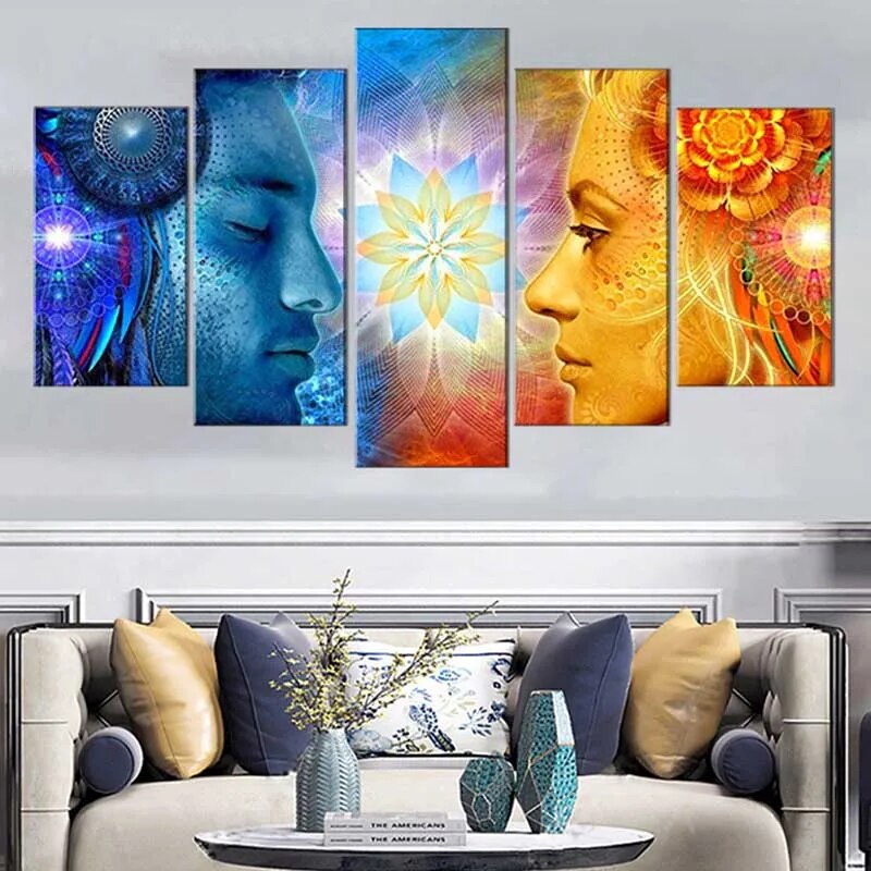 Du bleu à l’orange en passant par le violet, ce tableau visage femme et homme coloré explore presque toute la palette de couleurs en garantissant leur harmonie. Les couleurs ont toutes leur signification et sont une grande source d’inspiration.
